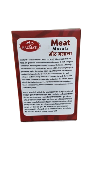 Bagmati Meat Masala is a rich and aromatic spice blend crafted to bring out the authentic taste of meat dishes. Made with a perfect mix of traditional spices, it adds depth, warmth, and a bold flavor to curries, gravies, and roasted meats. Ideal for mutton, chicken, or beef preparations, Bagmati Meat Masala helps you create delicious, restaurant-style meals with ease at home.